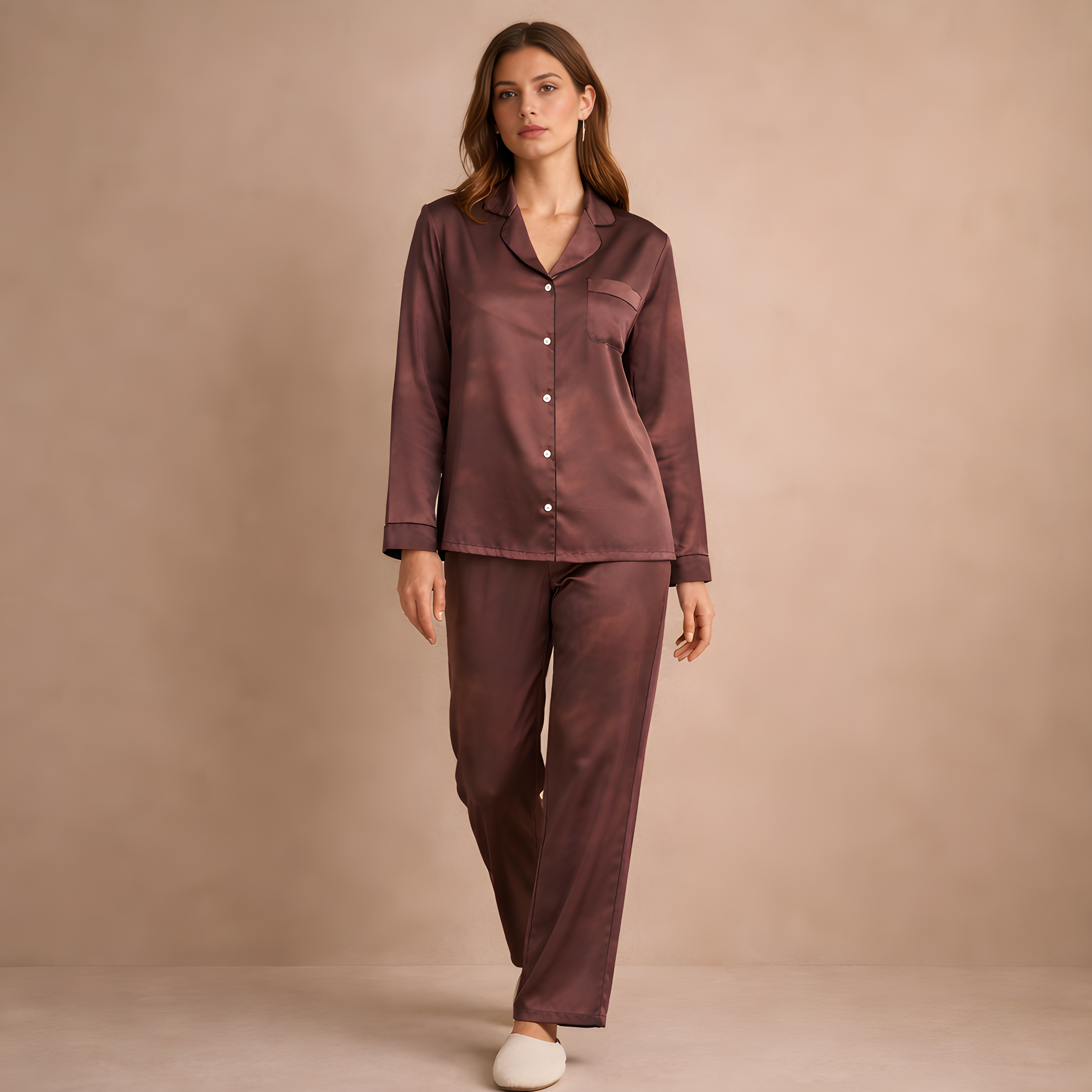 Rose-Heart Satin Pajama Top